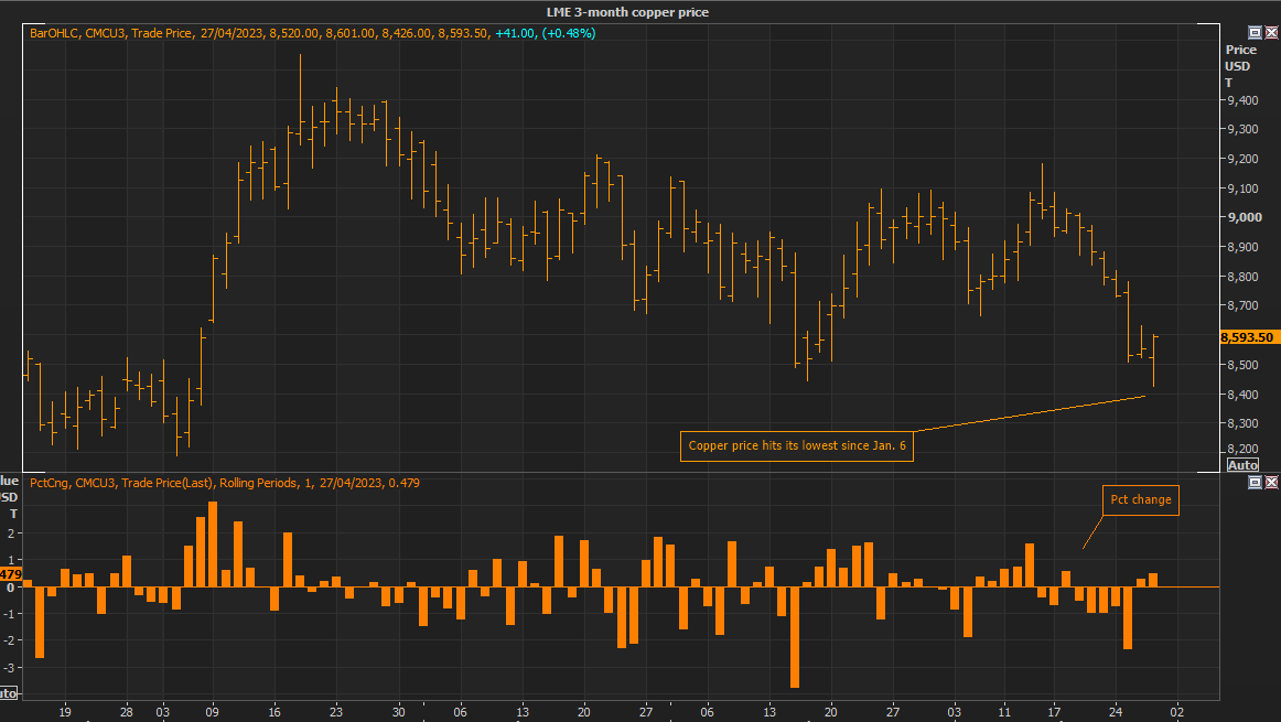 Se esperaba que la demanda de cobre de China aumentara a principios de 2023 cuando el principal consumidor de metales del mundo eliminó sus estrictas restricciones por el covid, pero hasta ahora el crecimiento no ha cumplido con las expectativas iniciales, lo que ha hecho bajar los precios.