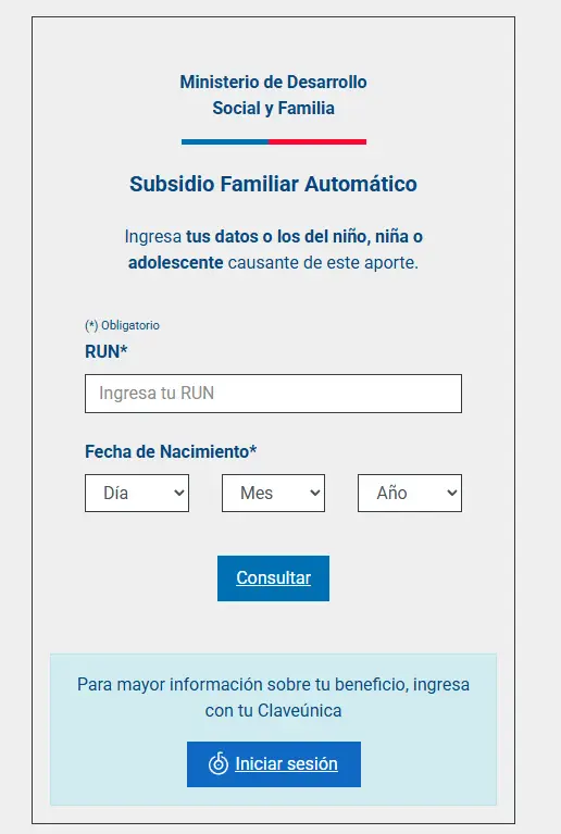 Los padres o tutores pueden revisar si sus hijos fueron incluidos como beneficiarios mediante una consulta en línea, ingresando el RUT y la fecha de nacimiento en la plataforma oficial del Subsidio Familiar Automático.