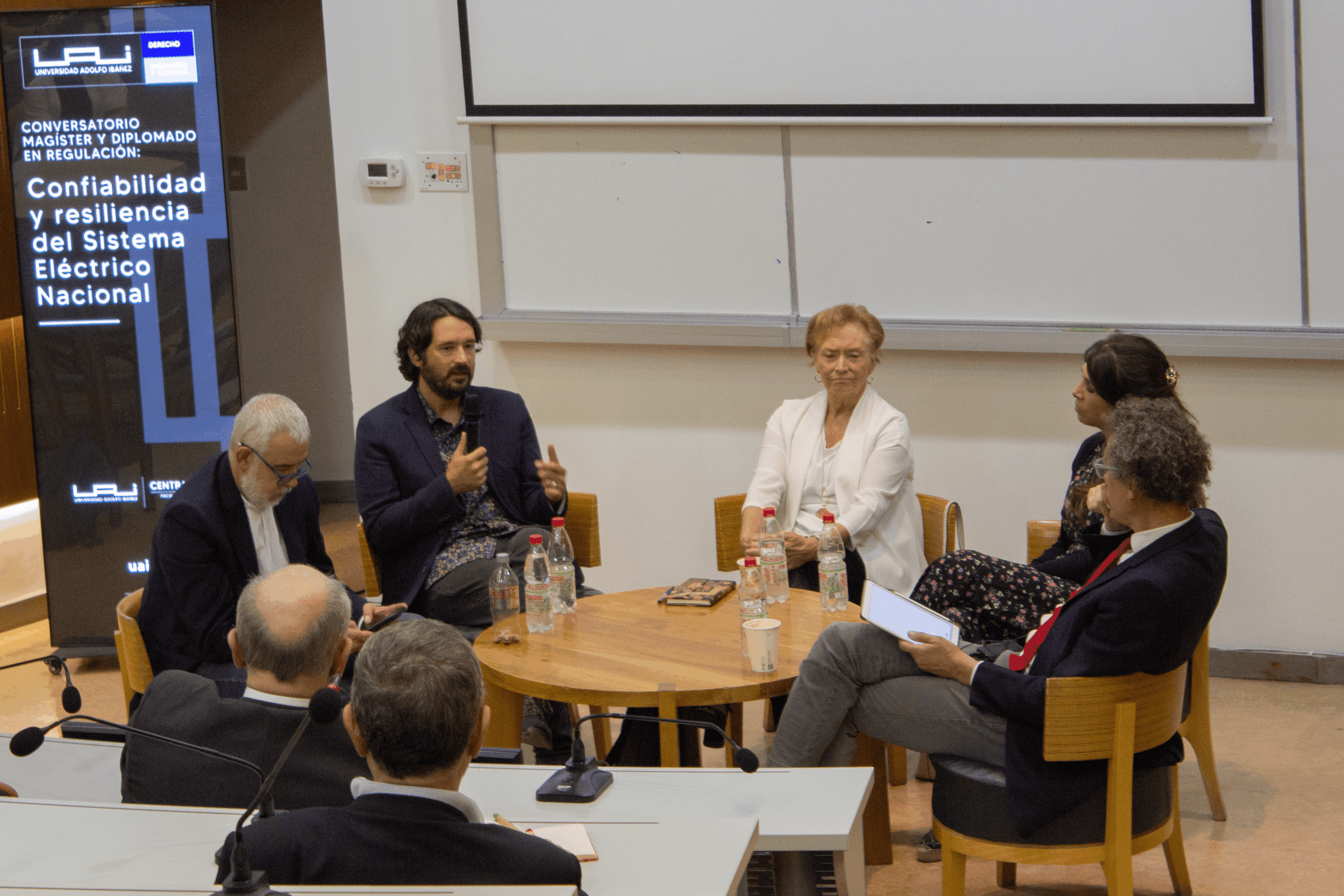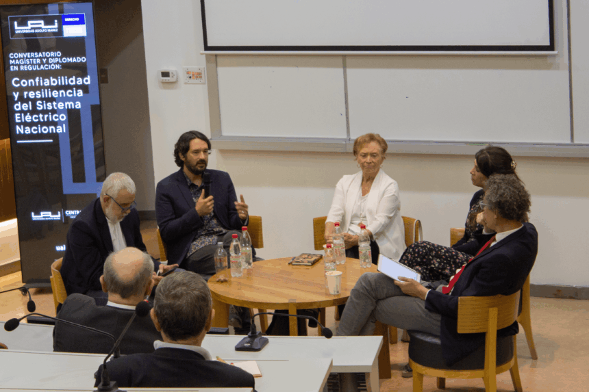 El panel contó con la participación de Vivianne Blanlot, economista y exministra de Defensa; Rodrigo Castillo, abogado y director académico del Magíster en Regulación de la UAI; Daniel Olivares, director de Ingeniería Civil en Energía de la Facultad de Ingeniería y Ciencias UAI; Claudia Rahmann, directora del Departamento de Ingeniería Eléctrica de la Universidad de Chile; y Claudio Seebach, decano de la Facultad de Ingeniería y Ciencias UAI, quien moderó la discusión.